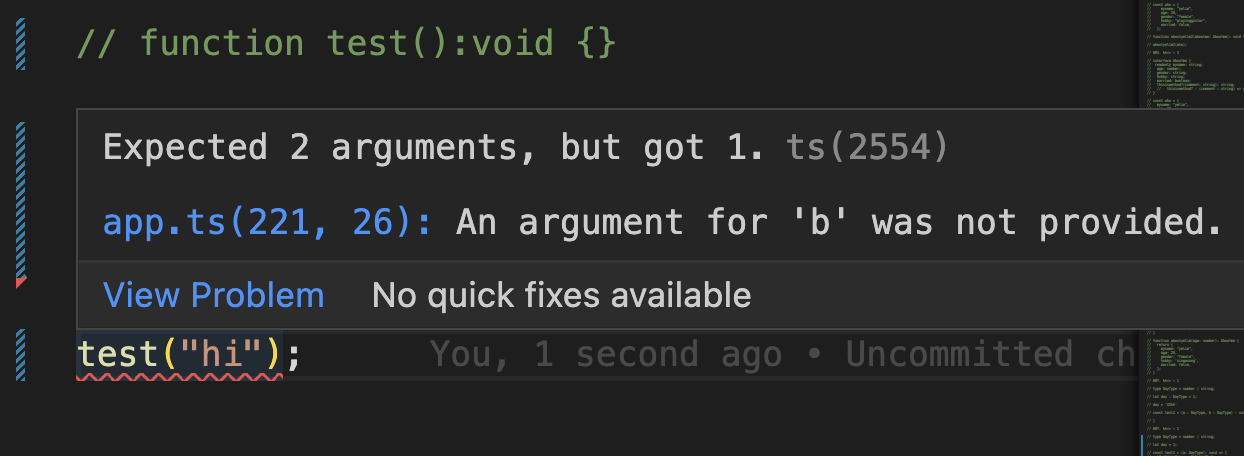 function test(a: string, b?: string): void { console.log(a, b); } test("hi");